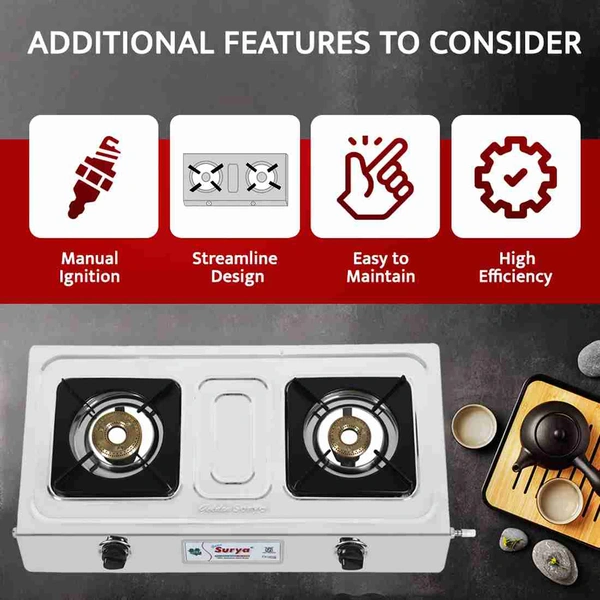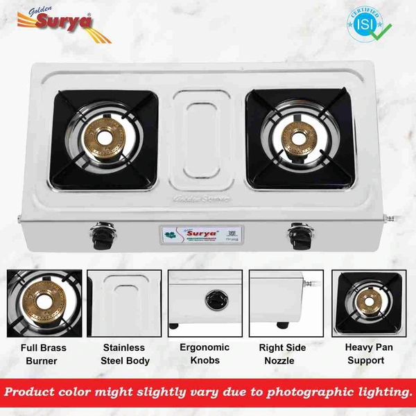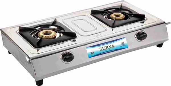 Surya Lpg Gas Stove Mini Body 2 Burner Brass Stainless Steel Both Side Nozzle Available